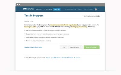 If you need to interrupt a practice test for any reason, you can easily mark your